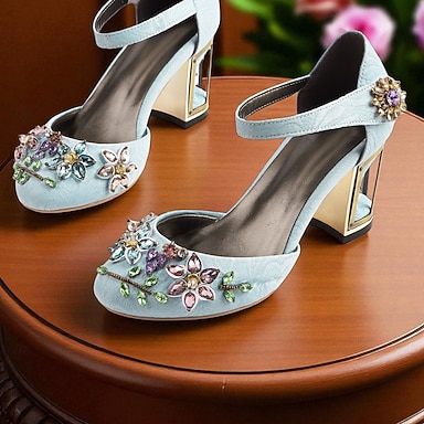 Dámské barokní lodičky Mary Jane z vintage Gatsby 20. let - elegantní světle modré lodičky s perlovými a květinovými detaily pro svatby večírky a zvláštní příležitosti