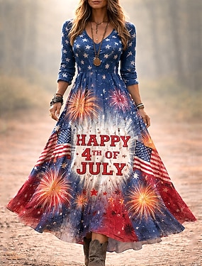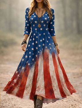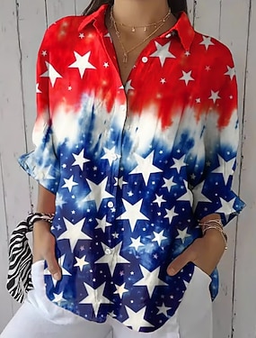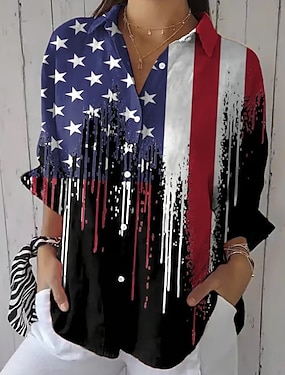 Americký den nezávislosti Dámské Košile Nabírané šaty Květinový Grafika Vlajka Vinobraní stylové Dlouhý rukáv Volné rukávy Zvonové Košilový límec Běžné topy Denní Práce Dovolená Černá Námořnická modř