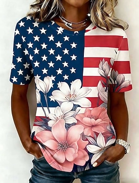 Ženská blůza knoflík dolů květinový grafický stylový pláž krátký rukáv V krk běžné topy každodenní tisk duha léto jaro