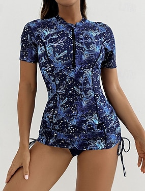 Dámské Plavky 2 ks Kraťasy Plavky Zip prázdniny Oblečení na pláž Grafika Kulatý Krátké rukávy Plavky