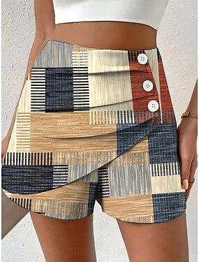 Dámské Kalhoty chinos Kraťasy prázdniny Vinobraní Etnický styl Krátký Vysoký pas Grafika Geometrický Barevné bloky Plisé Neelastické Denní Dovolená Formální Fialová Tiffany tyrkysová Žlutá Trávov