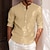 Pánské Košile Lněná košile Popover košile Letní košile Oblečení na pláž Tričko Henley Pevná barva Dovolená Domů Světlá růžová Nebeská modř Trávová zelená Khaki Dlouhý rukáv Stojáček Léto Jaro Oblečení