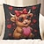 Valentýnský 2D plochý povlak na polštář s potiskem, náhrdelník s krávou a červeným srdcem, čelenka s růží, mrkající design, rozkošný valentýnský dárek, dekorativní povlak na polštář na pohovku