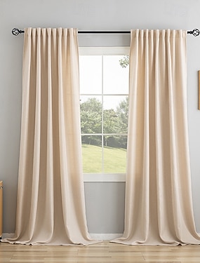 Lněné závěsy pro obývací pokoj Ložnici Zatemňovací Spona Závěs Grommet Sběr Back Tab/Pinch Plisované Světlo Blokující Záclony Zatemňující 1ks Krém