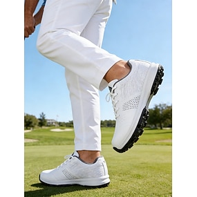 Pánské bílé atletické golfové boty, prodyšný svršek, protiskluzová trakce, lehké a pohodlné, ideální na golfové hřiště i trénink