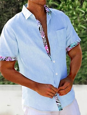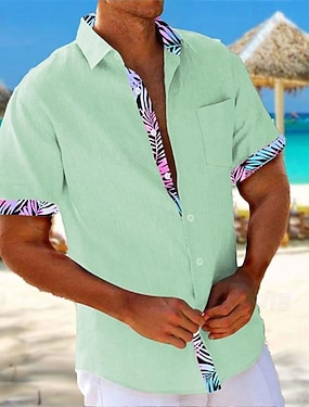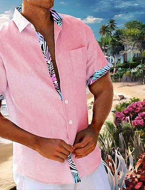 Pánské Žralok Tropický vzhled Košile Havajská košile Aloha košile Krátký rukáv Košile Přehnutý Na běžné nošení Venkovní ulice Běžné / Denní Světlá růžová Rubínově červená Modrá S M L