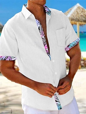 Pánské Palma Plachetnice Tropické rostliny Košile Havajská košile Aloha košile Krátký rukáv Košile Přehnutý prázdniny Havajské Resort styl Venkovní Dovolená Plážové Černá Bílá S M L