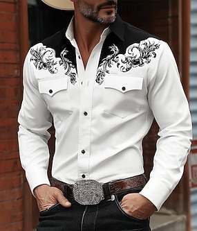 Pánské Kašmírový vzor Květiny Košile Westernová košile Kovbojská košile Dlouhý rukáv Vintage Retro Ležérní Venkovní Pracovní oděvy Jaro Podzim Přehnutý Přední dvě kapsy Len jako košile Košile na