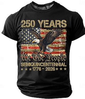 4. července 2026 250. výročí Památného dne Pánské 3D tištěné triko s americkou vlajkou s krátkým rukávem každodenní ulice