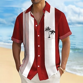 Pánské Barevné bloky Kokosový strom Tropické rostliny Košile Havajská košile Bowlingová košile Krátký rukáv Košile Přehnutý Módní 50. léta Pro volný čas Dovolená ulice Jdeme ven Černá Světlá růžov