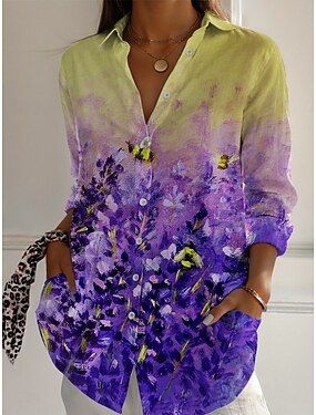Dámské Košile Květinový Aktivní Denní stylové Dlouhý rukáv Košilový límec Běžné topy Denní Dovolená Knoflíky Tisk Fialová Jaro Podzim