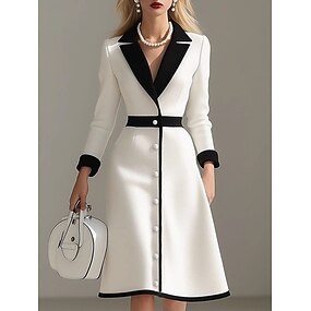 Dámské Midi šaty Blazer šaty Áčkové šaty Bodycon šaty Semiformální šaty Kancelář Běžný Bez vzoru Dlouhý rukáv Košilový límec Černá Bílá Námořnická modř Meruňková Jaro Podzim Zima
