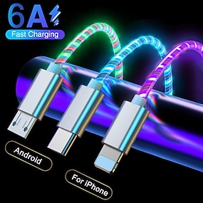 3-v-1 6a 66w rgb super rychlý nabíjecí kabel typ-c micro usb nabíjecí kabel průtok cool barevná záře datová linka pro iphone android
