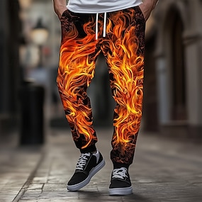 Pánské Plamen Kalhoty Kalhoty pro volný čas Volné kalhoty Středně vysoký pas Móda pro volný čas Streetwear Dovolená Elastická šňůrka v pase Kalhoty z lněného materiálu s kapsami Léto Jaro 3D tisk