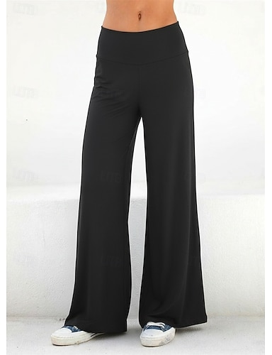 Dámské Široké nohavice Kalhoty chinos Elegantní prázdniny Módní Plná délka Vysoký pas Bez vzoru Kapsy Elastický pas Pohodlný Pohodlné Yumuşak Lehce elastické Denní Venkovní Obchod Fialová Černá Jaro