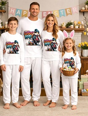 Rodinný vzhled Velikonoce Pyžama Grafika Králíček Ležérní Tisk Bílá Dlouhý rukáv prázdniny Odpovídající oblečení