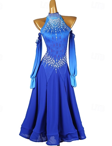 Standardní tance Šaty Štras Dámské Výkon Trénink Dlouhý rukáv Vysoký Šifón Čínský nylon Tyl