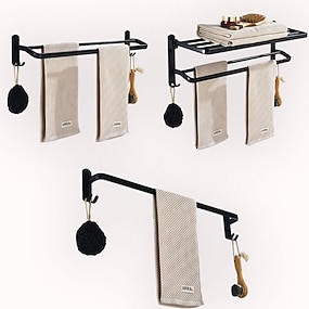 černý koupelnový věšák na ručníky černý koupelnový věšák na toaletní potřeby závěsná sada na ručníky bez perforace