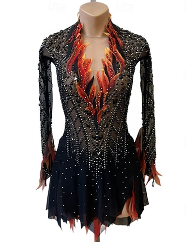 Šaty na bruslení Dámské Dívčí Buz Pateni Šaty Černá Díra na palec Otevřít Zpět Síťka Vysoká pružnost Trénink Soutěž Bruslařské oblečení Klasický Křišťál a napodobenina Dlouhý rukáv Bruslen