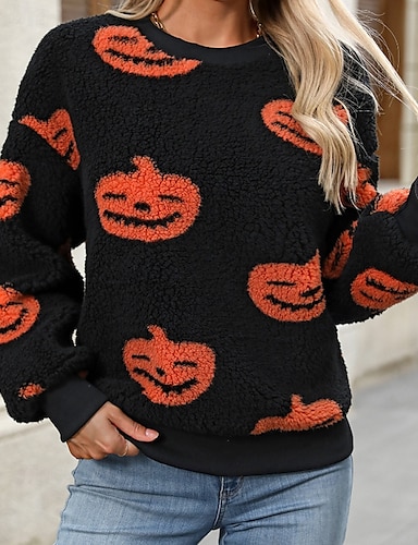 Dámské Svetrová mikina Mikiny Dýně Šik ven Na běžné nošení Dlouhý rukáv Tričkový Běžné topy Dovolená Jdeme ven Tisk Černá Oranžová Zima