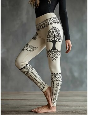 Dámské Legíny Pohodlné legíny prázdniny Vinobraní Etnický styl Plná délka Vysoký pas Grafika Strom Potisk Pohodlné Elastické Ležérní Denní Dovolená Béžová Jaro Podzim Slim