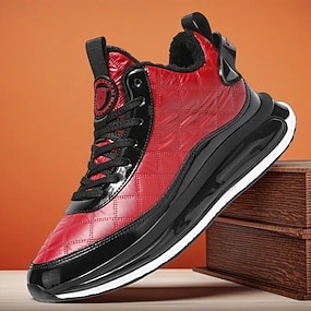 Pánské Tenisky Vánoční boty Flísová podšívka Chůze Na běžné nošení PU kůže Pohodlné Protiskluzové Prodyšné Kotníčkové Šněrování Černá Červená Léto Jaro Podzim