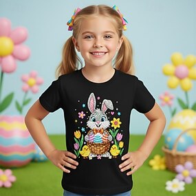 100% bavlna Velikonoce Děti Dívčí Vodní modrá Černá Bílá Grafika Králíček Tričko Košilky Tričkový Krátký rukáv Denní Venkovní Streetwear Aktivní Na běžné nošení Potisk Léto Jaro