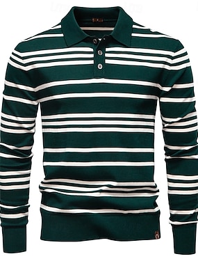 Pánské Pulovrový svetr Polo svetr Plést Běžné topy S proužky Knoflíky Horizontální pásky Polo límec Vinobraní Denní Škola Domů Oblečení Jaro Podzim Černá Hnědá S M L