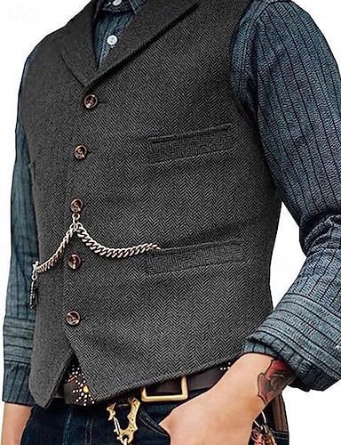Pánské Kamizelka Vesta Svatební Večírek Vintage Retro Jaro Podzim Kapsy Polyester Zahřívací Pevná barva Jednořadé Běžný Námořnická modř Tmavě zelená Kávová Šedá Vesta