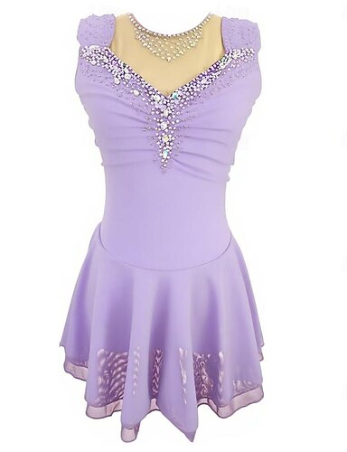 Šaty na bruslení Dámské Dívčí Buz Pateni Šaty Fialová Slátanina Otevřít Zpět Síťka Spandex Vysoká pružnost Trénink Profesionální Soutěž Bruslařské oblečení Klasický Křišťál a napodobenina Dlouhý rukáv