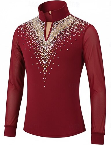 Krasobruslení Pánské Buz Pateni Topy Červená Slátanina Elastické Trénink Soutěž Bruslařské oblečení Klasický Křišťál a napodobenina Dlouhý rukáv Bruslení Krasobruslení