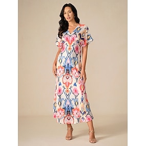 dámské midi šaty s grafickým potiskem ve výstřihu elegantní tropické domácí rande s krátkým rukávem letní