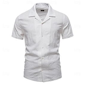 Pánské Košile Černá Bílá Khaki Krátký rukáv Pevná barva Kubánský límec Venkovní Ležérní Knoflíky Oblečení Denní Běžné Denní Pro volný čas