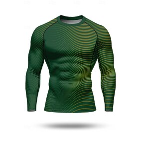 Pánské Stahovací tričko Koşu Tişörtü 3D tisk Bezešvá Dlouhý rukáv Základní vrstva Proužky Rychleschnoucí Komprese Power Flex Odvod vlhkosti Cvičení v tělocvičně Aktivní trénink Cvičení sportovn
