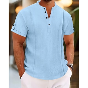 Pánské Tričko Henley Tričko Top Lněné tričko Krátký rukáv Krátké rukávy Do V Henley Léto Celý rok Bez vzoru Módní Designové Základní Jednoduchý Dovolená ulice Ležérní Černá Bílá Světle modrá Top