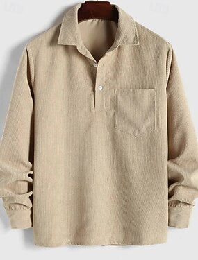 Pánské Košile Popover košile Košile pro volný čas Plážová košile Kordurová košile Hnědá Trávová zelená Tmavomodrá Meruňková Dlouhý rukáv Pevná barva Klopa Dovolená Ležérní Kapsy Oblečení Módní Na