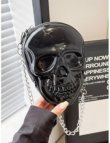 Dámská halloweenská crossbody kabelka s motivem lebky – gotická kožená kabelka přes rameno s řetízkem na párty, cosplay a večerní zábavu