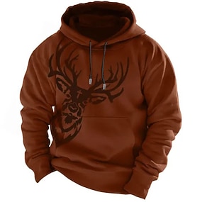 Pánské Jelen Kapuce Mikina Módní Klasické Lovecká Dlouhý rukáv Tričkový Venkovní Lovecká Rubínově červená Trávová zelená Šňůrky Podzim Zima Návrhář S M L XL XXL XXXL