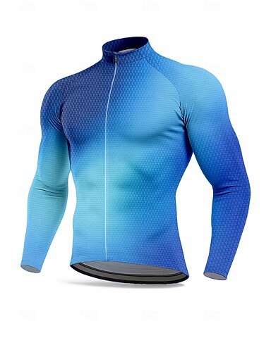Pánské Topy Cyklodres Grafika Geometrický Spád Dlouhý rukáv Kolo sako Dres Vrchní část oděvu se 3 zadními kapsami Slunce Ochrana proti slunci Proti sluci Rychleschnoucí Sportovní Vodní modrá Oblečení