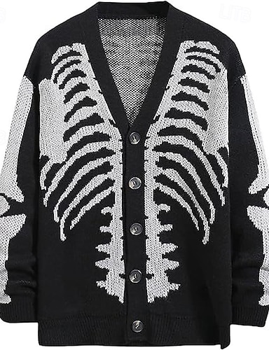 Pánské Oříznutý svetr Svetr Cardigan Žakárový svetr Pletený svetr Rýhovaný Plést Standardní Lebky Do V Módní Klasické předvečer Všech svatých Denní nošení Oblečení Podzim zima Vojenská zelená Černá S