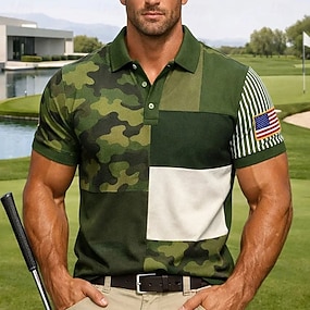 4. července 2026 250. Pánské Kamuflážní barva Golf Sportovní polokošile Krátký rukáv Polo tričko Košile s límečkem Na běžné nošení Oblečení na atletiku Knoflíky Léto Jaro Vodní modrá Trávová zelen