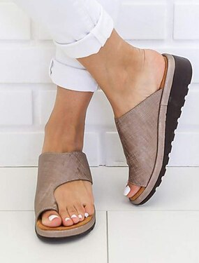 Dámské Ležérní Denní Cestování Klín Otevřený palec Na běžné nošení PVC Nasazovací Béžová