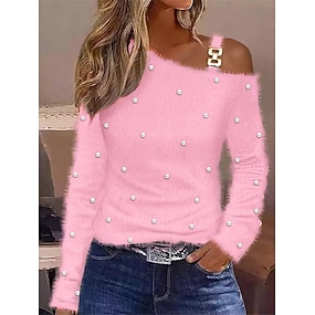 Dámské Pulovrový svetr Pletený svetr Skokan Módní Základní Na běžné nošení Pevná barva studené rameno Slátanina Korálky Dlouhý rukáv Běžné topy Plést Denní Venkovní Dovolená Světlá růžová Podzim Zima