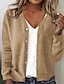 Dámské Kardigan Na běžné nošení Pevná barva Tlustý Do V Pletený Dlouhý rukáv Běžné topy Plést Denní Dovolená Jdeme ven Béžová Podzim Zima