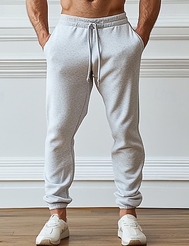 Pánské Tepláky Kalhoty Tepláky s rovnými nohama Šňůrky Kapsy Elastický pas Bez vzoru Pohodlné Outdoorové sporty Denní Módní Na běžné nošení Černá Světle šedá Lehce elastické