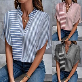 Dámské Košile Halenka Slátanina Proužky Elegantní prázdniny stylové Krátký rukáv Do V Dlouhé topy Denní Dovolená Jdeme ven Světlá růžová Námořnická modř Léto Jaro