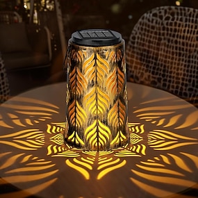 venkovní solární palmový list železná lucerna vodotěsný nádvoří zahrada cesta trávník festival atmosféra dekorativní světlo teplé světlo bílé světlo dva typy světla
