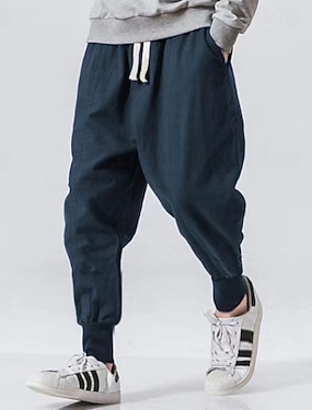 Pánské Plátěné kalhoty Kalhoty Slátanina Šňůrky Harémové Pevná barva Prodyšné Rychleschnoucí ulice Ležérní Oblečení na atletiku Volný Černá Šedá Lehce elastické / Zima / Oříznuté kalhoty / Lehká váha