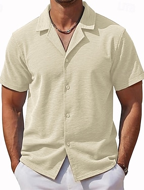 Pánské Košile Košile pro volný čas Košile na knoflíky Bordó Meruňková Kávová Krátký rukáv Bez vzoru Kubánský límec Ležérní Denní Oblečení Elegantní Módní Na běžné nošení