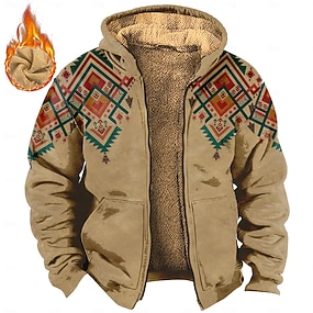 Pánské Kovbojské Fleece Kapucky Mikina Geleneksel Kovbojské Vintage Retro Dlouhý rukáv Kapuce Dovolená Outdoorové sporty Streetwear Hnědá Šedá Šňůrky Podzim Zima Návrhář S M L XL 2XL 3XL